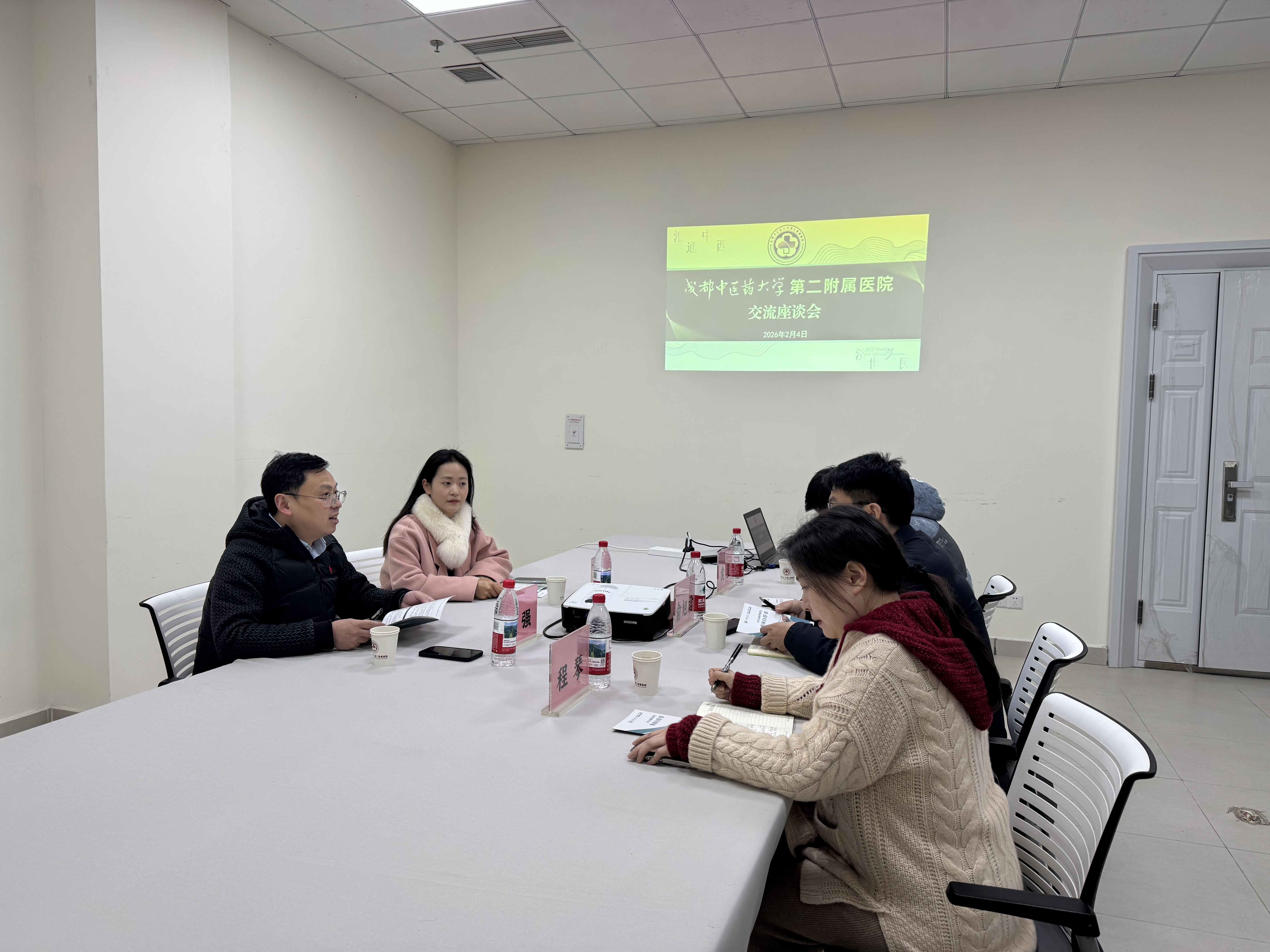 2月4日下午,成都中医药大学管理学院党委副书记、纪委书记任强及专职辅导员代艳一行莅临我院,开展“访企拓岗”促就业专项调研。我院党总支副书记/副院长俞旭君、组织人事部部长程琴及党委办公室主任袁星出席交流座谈。