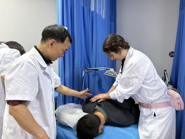 程霞一行观摩了我院针灸推拿科带教老师现场推拿教学和案例分析。