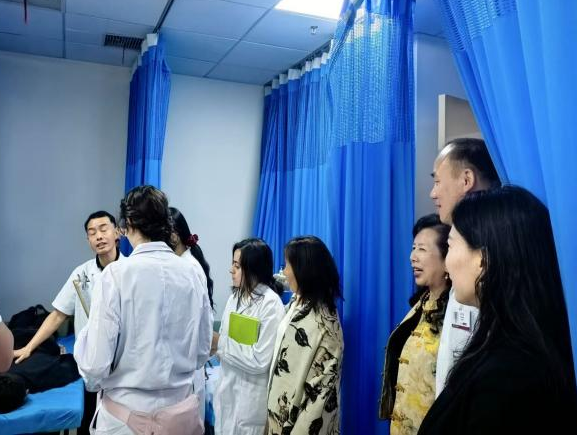 程霞一行观摩了我院针灸推拿科带教老师现场推拿教学和案例分析。